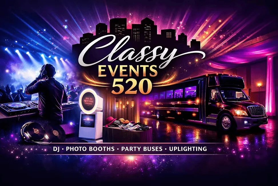 At Classy Events 520, we believe every event deserves the right energy, the right professionalism, and the right experience. Whether you are planning an intimate wedding reception, a bachelorette party for 20, a Sweet 16 celebration, or a birthday party bus tour — we bring the talent, the vehicles, the equipment, and the commitment to make it everything you envisioned.
